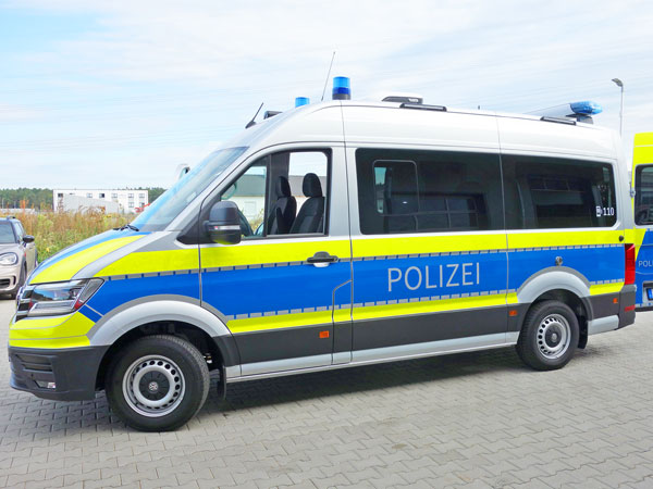 Der neue VW Crafter wurde von uns mit Sondersignal-/Antennen-/Funktechnik sowie Klimaanlage, Markise, elektrischer Stufe, einem Handwaschbecken, Einbaumöbeln, einem Arbeitsplatz sowie Halterungen im Heck für das Einsatzmaterial ausgestattet und anschließend nach Polizeivorgaben foliert. Durch den Sonderausbau wurde aus dem neutralen Fahrzeug ein Einsatzfahrzeug der Polizei Bayern mit der benötigten Ausstattung für mobile Einsätze.